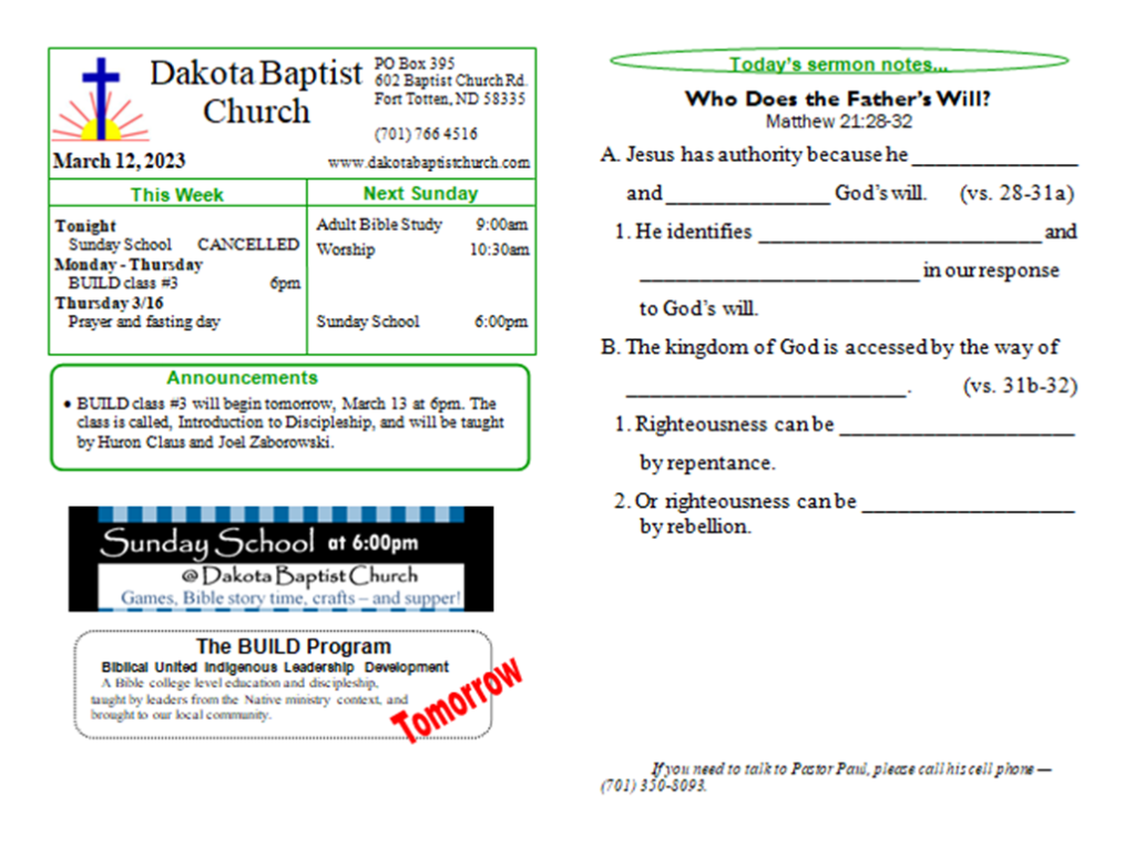 Our regular worship service is cancelled this morning due to the weather, but we will have a shortened service on Zoom at 11am. Message Pastor Paul at 701 350 8093 for the meeting information if you would like to join.